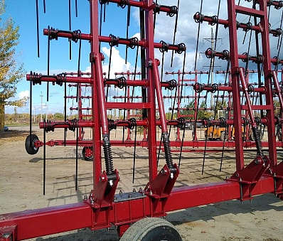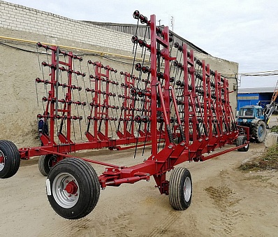 Борона пружинная предназначена для эффективной подготовки почвы. Основная сфера использования – уничтожение сорняков на посевных полях, а также – создание водного баланса в плодородном слое почв грунта и разрушение образовавшейся верхней корки. Трактор проходит с бороной данного вида, как до посевных работ, так и после сбора урожая. Поверхность поля выравнивается. Подходит для всех видов технических и зерновых культур. Борона на один проход выполняет сразу 4 операции, начиная от боронования и рыхления почвы и заканчивая заделкой удобрений.