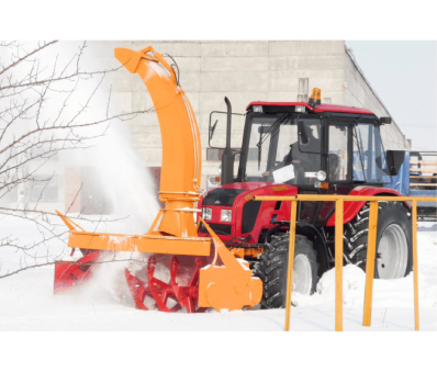 Установленный поворотный желоб позволяет грузить снег в транспортное средство как справа, так и слева по ходу трактора.