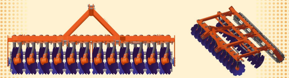 Борона дисковая навесная с 2-х рядным расположением рабочих органов (дисков). Предназначена для рыхления и подготовки почвы под посев; уничтожения сорняков и измельчения пожнивных остатков; для предпосевной подготовки почвы без предварительной вспашки и обработки почвы после уборки толстостебельных (за два прохода) пропашных культур.