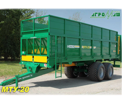 Машина МТУ-20 предназначена для транспортировки и сплошного поверхностного внесения твердых органических удобрений.