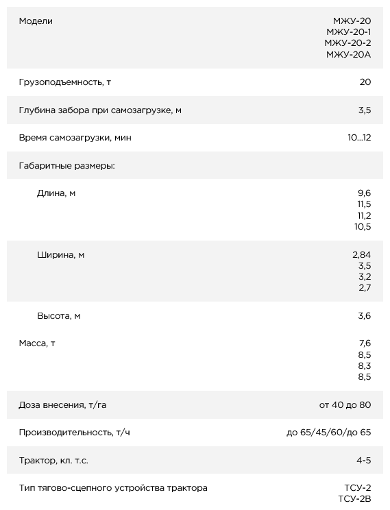 - с трёхосной ходовой системой и адаптером для внутрипочвенного внесения (МЖУ-20А-1)