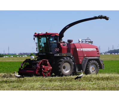 Складная роторная жатка для уборки грубостебельных культур врезается в массив кукурузы, срезая стебли чисто и на одинаковой высоте. Стебли подаются к питающему аппарату только нижней частью. Это позволяет полностью избежать потерь початков, оставляя за машиной идеально убранное поле. На уборке кукурузы восковой спелости с твёрдыми стеблями качество среза и равномерность подачи срезанной массы по-прежнему остаются стабильными.