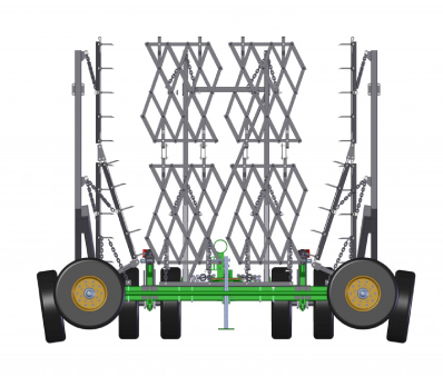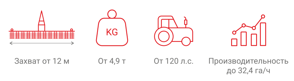 Агрегатируют зубовые бороны посредством двурядных сцепок KAMA LEOPARD 12 с тракторами мощностью от 120 до 180 л.с.