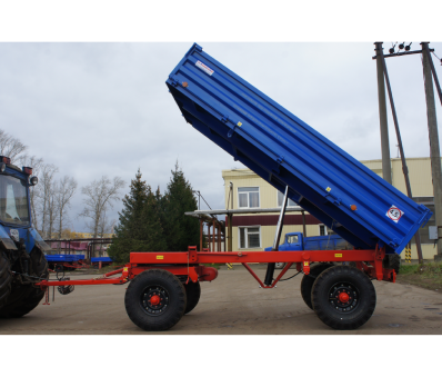 НАЗНАЧЕНИЕ:Самосвальный прицеп 2ПТС-4,5 используется как для транспортировки сельскохозяйственных грузов, так и для перевозки строительных грузов различного назначения. Способен справиться с работой в условиях дорог общей сети, а также в полевых условиях. Прицеп агрегатируется с сельхозтехникой тягового класса 1,4 т, которая оснащена раздельно-агрегатной гидросистемой и имеет тягово-сцепное устройство согласно ГОСТу 2349. Обязательное условие – наличие у колесного трактора выводов для подключения пневматической тормозной системы, разгрузочного механизма и прочего электрооборудования. Разгрузка прицепа 2ПТС-4,5 трёхсторонняя. Новшество модели – улучшенные основные борта прицепа, которые изготовлены из профильного стального листа на прокатном стане. Благодаря этому борта имеют повышенную жесткость и эстетический внешний вид. Обварка стальных бортов выполняется с помощью роботизированного комплекса, что лучшим образом сказывается на качестве сварочных швов. Новый улучшенный замковый механизм бортов позволил сделать запирание бортов более удобным и надежным. Более прочным стал каркас надставных бортов, который теперь изготавливается из труб 60x40x2. Также увеличился объём кузова, что позволяет перевозить грузы большего объема при условии, что не будет превышена грузоподъемность транспортного средства.