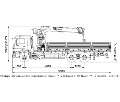 | Высота, мм | с шинами 11.00 R22,5 - 3790; с шинами 11.00 R20 - 3805 |