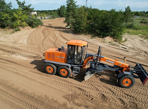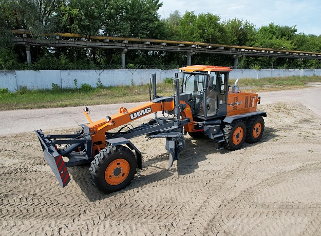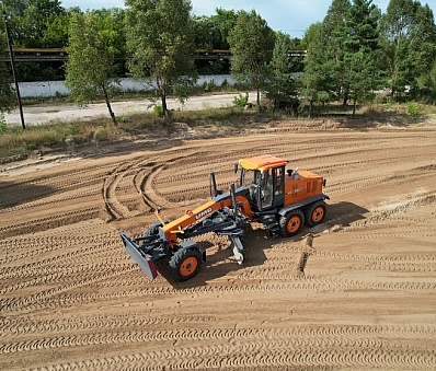 - Полноповоротный грейдерный отвал обеспечивает высокие технологические возможности автогрейдера