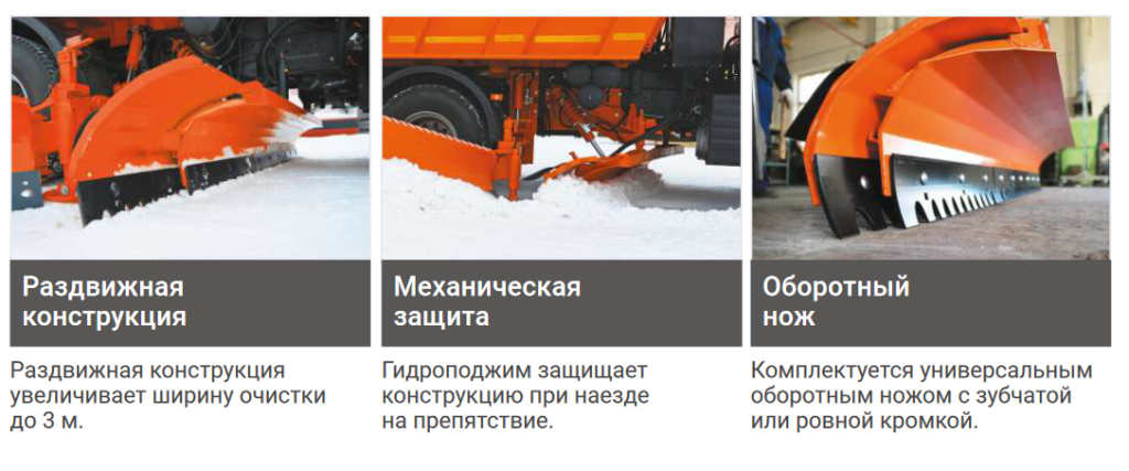 Комплектуется средний отвал универсальным ножом из специальной износостойкой стали. Функциональность ножа расширена за счет его оборотных свойств: зубчатая кромка позволяет легко врезаться в плотно слежавшийся снег и наледь, а при обороте — ровная кромка идеально подходит для планировочных работ.