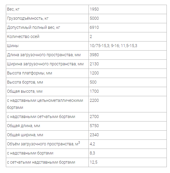 Грузоподъемность, кг — 5000