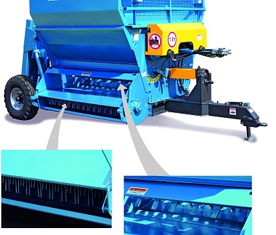 Измельчитель ИР-1,8 с дополнительным ротором имеет доизмельчающий ротор, позволяющий получить повышенную степень измельчения сена 50-70 мм. Возможна работа измельчителя в однороторном варианте. Управление измельчителем производится с помощью тросового гидрораспределителя из кабины трактора.