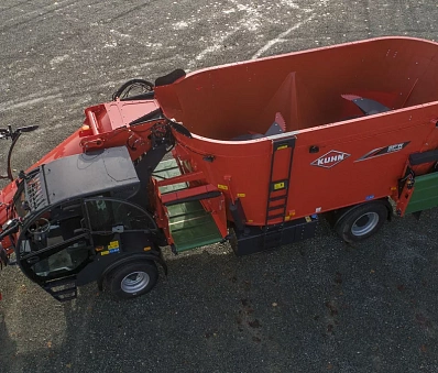 Площадь окон в новой кабине VISIOSPACE увеличена на 20% по сравнению с предыдущим вариантом исполнения. Новая конструкция VISIOSPACE обеспечивает лучшую видимость на всем рынке. Все препятствия для фронтального обзора были устранены для обеспечения максимальной точности во время ключевых операций по заходу в силос. Большое окно дверцы также обеспечивает безопасное вождение. Лобовое стекло покрыто самонагревающейся пленкой, что гарантирует быструю работу смесителя-раздатчика даже при утренних заморозках или при скоплении конденсата при передвижении со двора в сарай. Очистка лобового стекла производится с помощью двойных стеклоочистителей, монтируемых на установку высотой 1400 мм, с 3 распылительными форсунками.