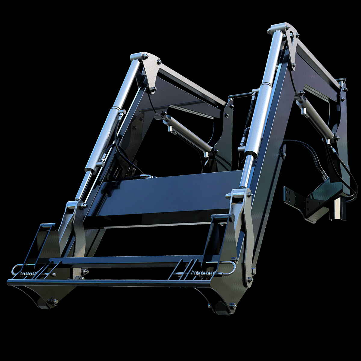 Мощные подрамники Балки подрамников изготовлены из стали толщиной 12 мм. Стойка подрамника изготовлена из стали 5 мм и соединена с балкой коробом толщиной 6 мм. Тяга на задний мост распределяет нагрузку по всей раме трактора (опция)
