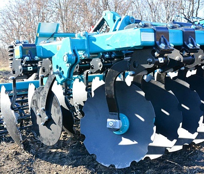 Взаимное расположение дисков рабочих органов, а также пружинного блока защиты от перегрузок позволяют работать на каменистых почвах и на полях с большим количеством растительных остатков.