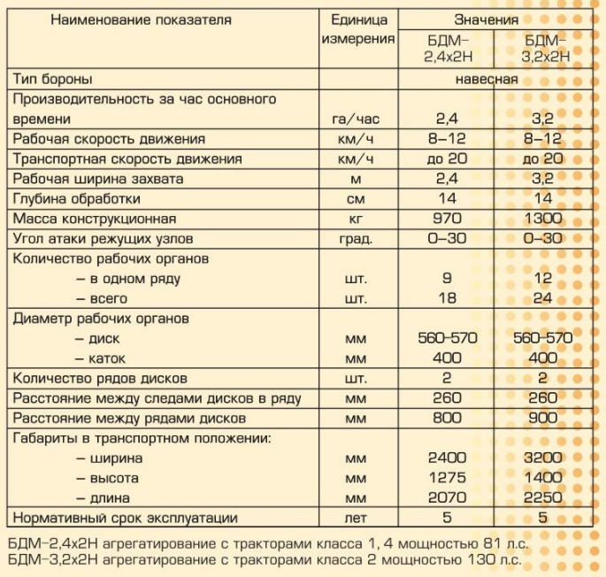 Борона дисковая навесная с 2-х рядным расположением рабочих органов (дисков). Предназначена для рыхления и подготовки почвы под посев; уничтожения сорняков и измельчения пожнивных остатков; для предпосевной подготовки почвы без предварительной вспашки и обработки почвы после уборки толстостебельных (за два прохода) пропашных культур.