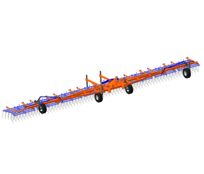 Борона составлена из восьми самостоятельных секций. Каждая секция индивидуально вешается на подвесе за счет цепей что создает нежесткую конструкцию и позволяет идеально копировать рельеф почвы. Расположение пружинных зубьев обеспечивает нарезку борозд (т.е. один зуб следует за другим) что дает обработку с минимальными просветами.
