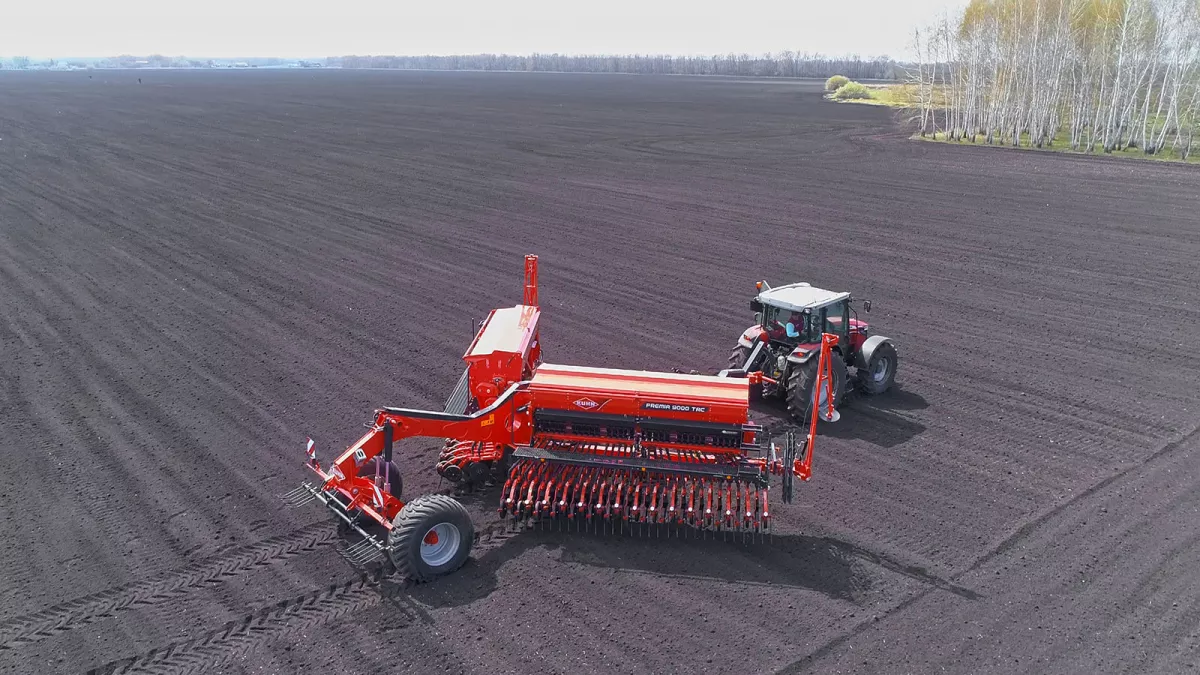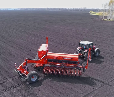 Требуется засеять больше гектаров площади, что требует вложений в новую сеялку, и в то же время вы не хотите заменять имеющийся трактор? Механическая сеялка PREMIA 9000 TRC с рабочей шириной 9,00 м - лучший инструмент для посева больших площадей на малых тракторах, но с высокими требованиями к производительности. Эта модель требует не более 120 л.с. мощности. Она объединяет в себе возможность сева и внесения удобрений. 60% объема бункера используется для семян, а 40% для удобрений. Все это подается в один ряд. Рабочие секции размером 4,50 м складываются вперед для перехода в транспортное положение – ширина при этом составляет 3,50 м.
