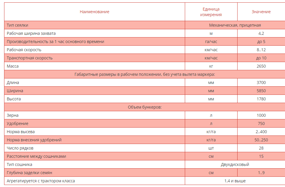 Сеялка может быть оснащена приспособлением для высева семян трав, штригелями, а также гидрофицированным транспортным устройством, которое позволяет перемещаться по дорогам общего назначения.