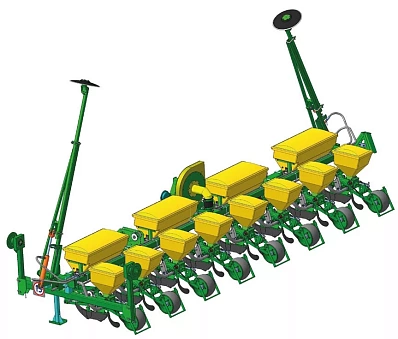 ▶ Особая конструкция обеспечивает независимую работу каждого высевающего аппарата и точное копирование рельефа почвы, что гарантирует движение сошника на заданной оптимальной глубине по всему полю.