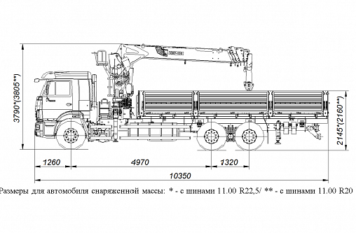 | Высота, мм | с шинами 11.00 R22,5 - 3790; с шинами 11.00 R20 - 3805 |
