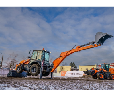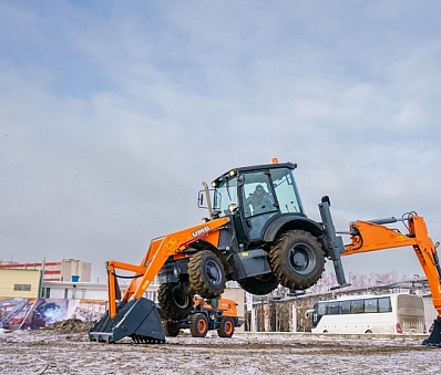 • Высокая проходимость. Подключаемый привод передних колес (режим 4WD), вседорожные шины и высокий дорожный просвет под картерами мостов, стабилизаторами и экскаваторной кареткой.