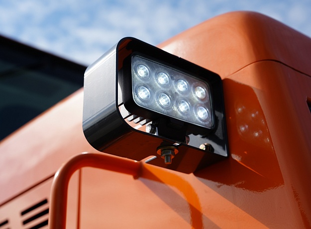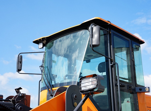 - Большой угол обзора, эффективное рабочее освещение, стеклоочистители на переднем и заднем окнах, позволяют сохранять оператору высокую производительность в различных погодных условиях.