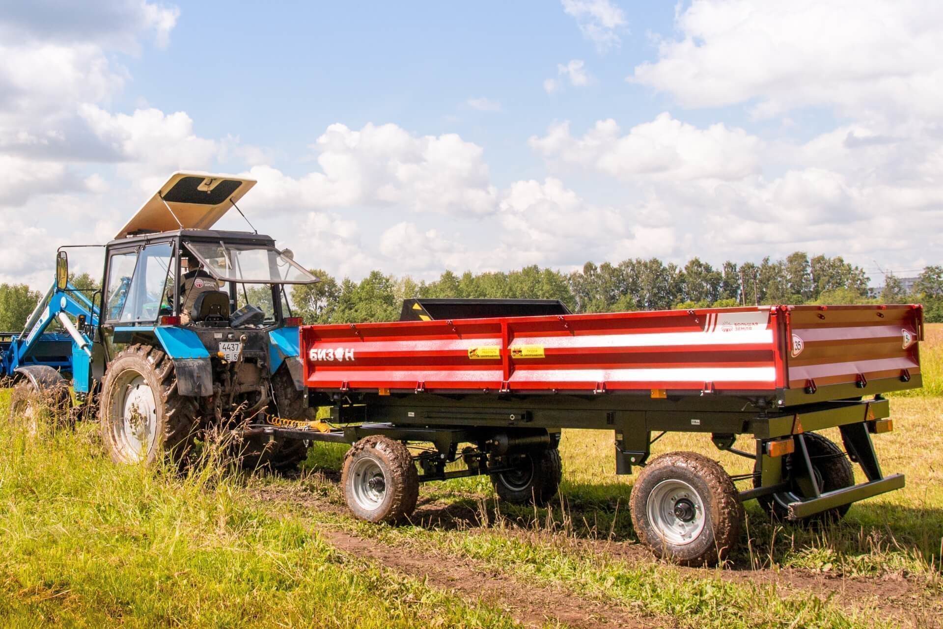 Тракторный самосвальный прицеп БИЗОН 2ПТС-5 предназначен для перевозки сыпучих и штучных грузов, массой не более 5т.