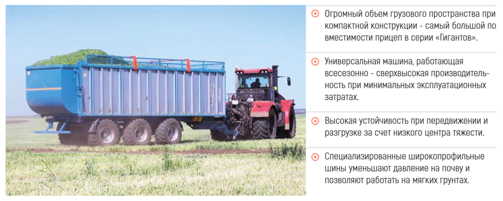 Полуприцеп ПСП-30 «Гигант» предназначен для перевозки различных сыпучих и твердых грузов (зерно, корнеплоды, зеленая масса, силос, сенаж, зерносенаж, навоз, торф, удобрения, опилки, снег и пр.) по всем видам дорог и в полевых условиях. Имеет самую большую грузоподъемность в классе широко известных полуприцепов серии ПСП «Гигант». Является универсальной техникой и может эксплуатироваться круглогодично.