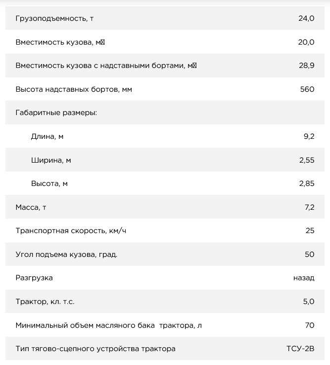 Основной цельнометаллический кузов с открывающимся при помощи гидроцилиндров задним бортом, имеет вместимость рассчитанную на перевозку материалов средней плотности (земля, мусор, навоз, силос готовый, удобрения минеральные) с учетом естественного насыпного конуса (шапки).