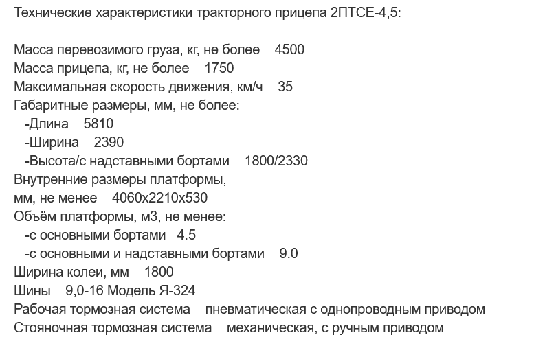 Назначение: прицеп тракторный самосвальный 2 ПТС-4,5 предназначен для перевозки различных сельскохозяйственных и сыпучих строительных грузов по дорогам общей сети и в полевых условиях.