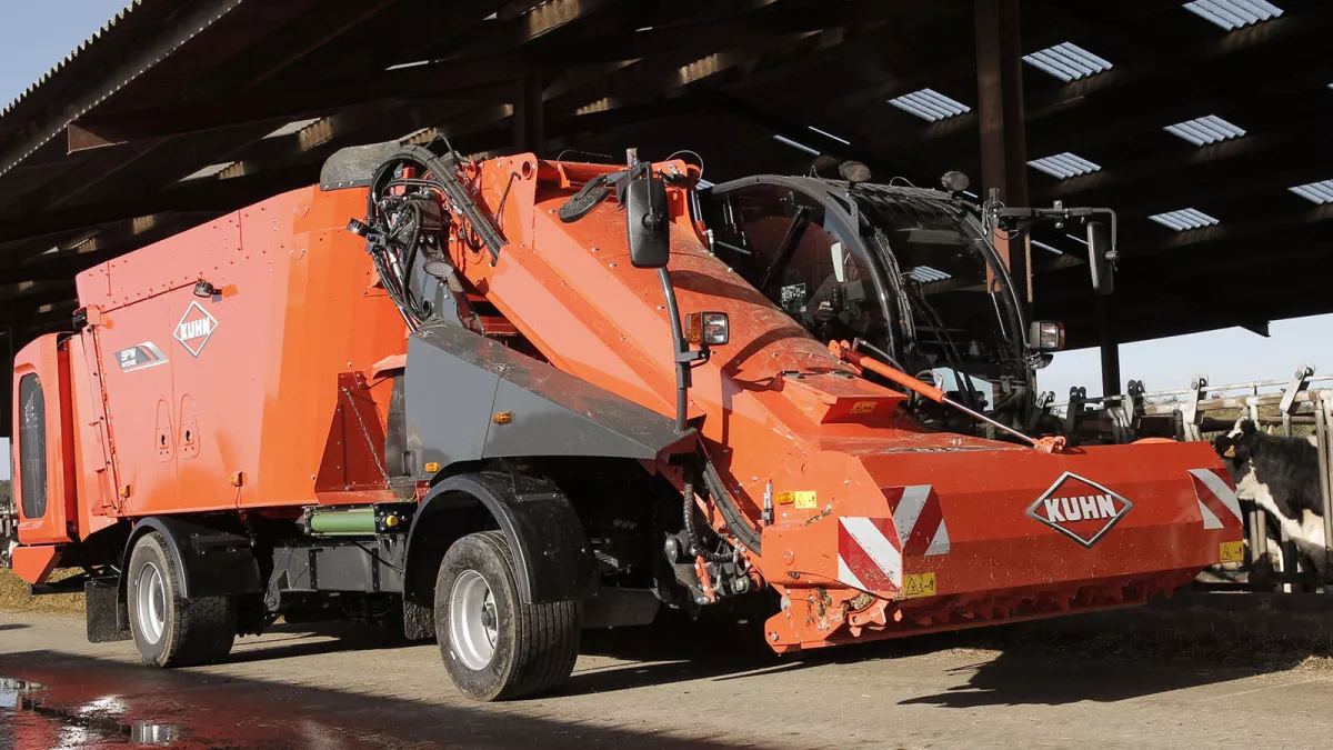 Кабина водителя на самоходном смесителе-раздатчике SPW Intense оборудована терминалом KUHN CCI. На его цветном сенсорном экране отображаются все технологические данные и информация о контроле веса. Водителю достаточно один раз взглянуть на экран, чтобы получить всю необходимую информацию о рабочем процессе. Максимальное удобство использования. С помощью терминала CCI оператор может управлять такими параметрами технического обслуживания машины, как настройка проведения плановых работ или работа в интерфейсе системы поиска неисправностей. Терминал CCI позволяет мгновенно регулировать скорость измельчающей головки, скорость вращения смесительного шнека и скорость подающего конвейера. С помощью терминала CCI можно управлять параметрами настройки кормов, составляя до 80 типов рациона из 15 различных компонентов. Терминал способен запомнить до 10 различных названий партий кормов. Возможность передачи данных через USB-порт на компьютер обеспечивает отслеживаемость выполнения всех проводимых операций.