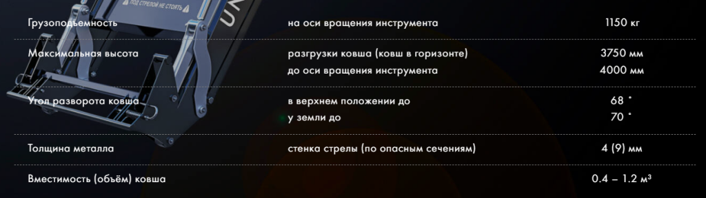 Объем ковша, м3 — 0,4-1,2