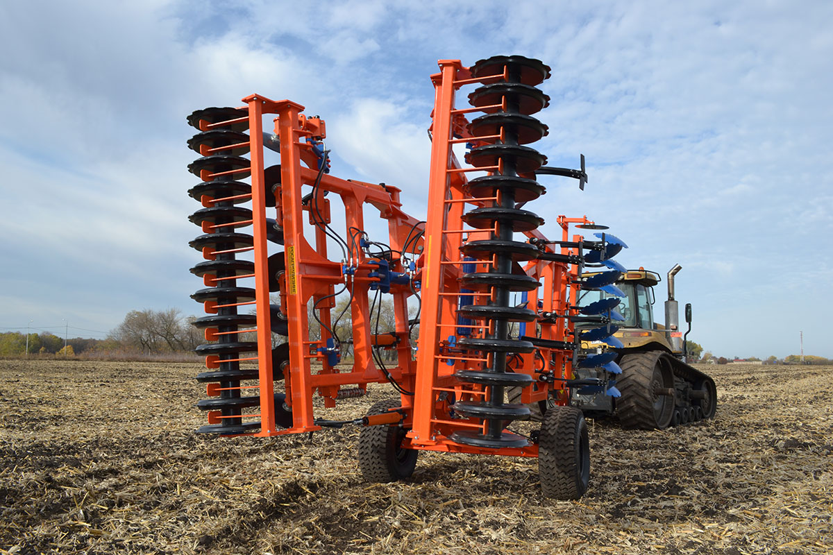Первая зона обработки представляет собой двухрядную дисковую борону с режущими узлами на пружинной С-образной стойке с диаметром диска 610 мм. Глубина обработки данными узлами составляет до 15 мм, что позволяет произвести полное измельчение пожнивных остатков и перемешивание их с почвой. Пружинная С-образная стойка за счет вибрирующих движений обеспечивает полное перекрытие зоны обработки.