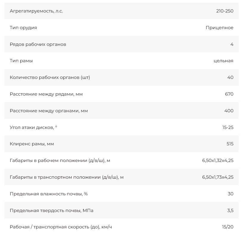 Орудие обеспечивает сплошную обработку по всей ширине захвата.
