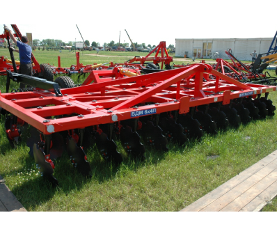 Дискатор БДМ-6х4П - дисковое почвообрабатывающее орудие. Предназначен для поверхностной обработки почвы на глубину до 15 см, уничтожения сорняков, измельчения пожнивных остатков. Применяется в различных агроклиматических зонах на большинстве типов почв. Эффективен для основной и предпосевной почвообработки, введения в оборот залежных земель, омоложения лугов и пастбищ.